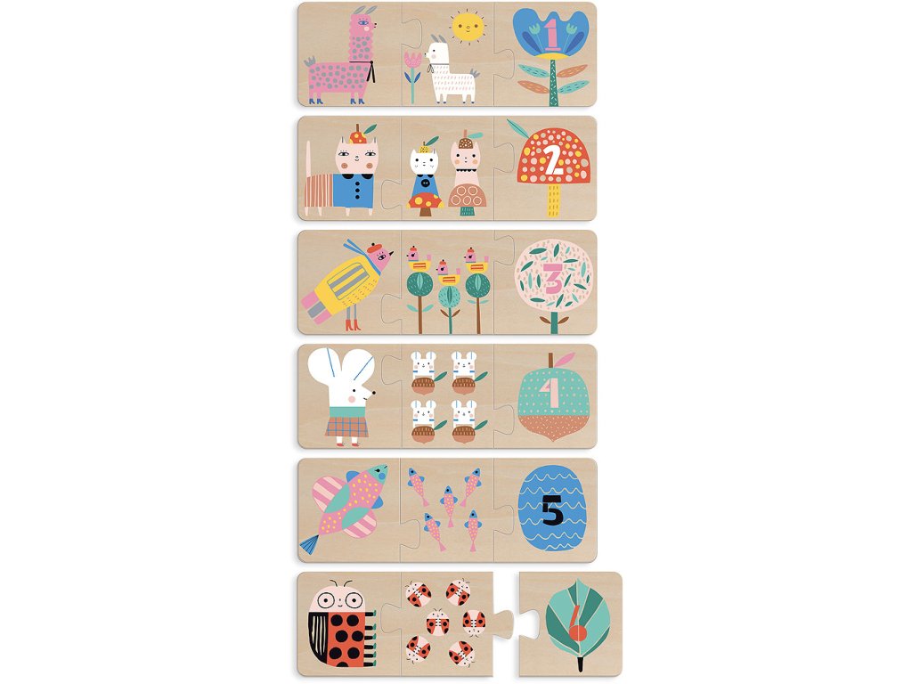 Přiřaďte maminku a mláďata k sobě a dejte tak rodinku opět dohromady. Šest řad puzzlí ze 3 dřevěných dílků. Ilustrace Suzy Ultman. Podporuje asociaci a děti se také naučí poznávat čísla a zvířata. Vhodné od 2 let. Hlavní vlastnosti: obsahuje 18 dílkůpraktický úložný boxdesign Suzy Ultman Suzy Ultman od dětství vytvářela hračky a knížky pro svou rodinu a přátele. Rozená vypravěčka, Suzy je také ilustrátorkou, produktovou designérkou, tvůrkyní hraček a knížek. Vytváří hlavně sofistikované a jednoduché předměty, které inspirují a potěší mladé i staré. Suzy vyrostla v Pensylvánii, ale její život a práce ji přivedly k cestám po světě, nejen jako turistku. Žila v městech od Los Angeles po Portland, přes moře v Amsterdamu a pak zpět v Bostonu. Suzyiny poznatky z těchto míst ji výrazně ovlivňují v tvorbě, ať už jde o zkrášlení Vaší knihovny nebo o výzdobu dětského pokoje, produkty Suzy vychází z malých detailů našeho vnitřního světa, které nás umí rozesmát, které nás spojují s lidmi po celém světě. Když zrovna ve své dílně neskládá papír, nedesignuje textilie nebo nevytváří hračky, najdete ji ve starožitnictvích, ve kterých hledá poklady, na bleším trhu, nebo v přírodě.