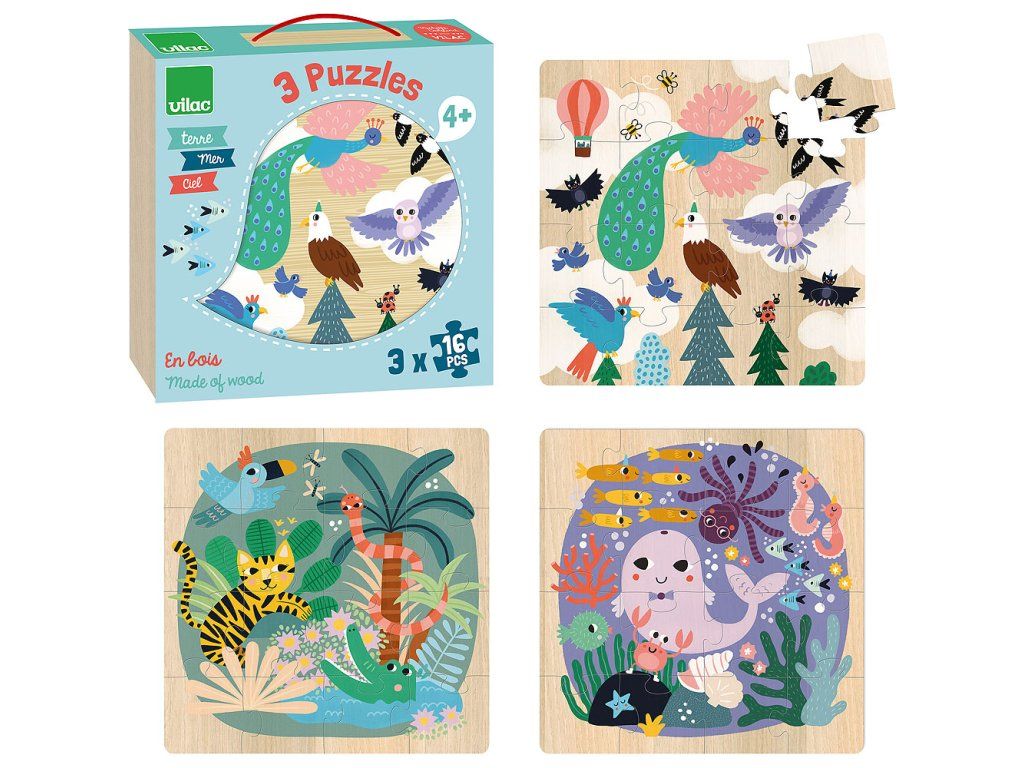 Vilac Dřevěné puzzle Moře země vzduch