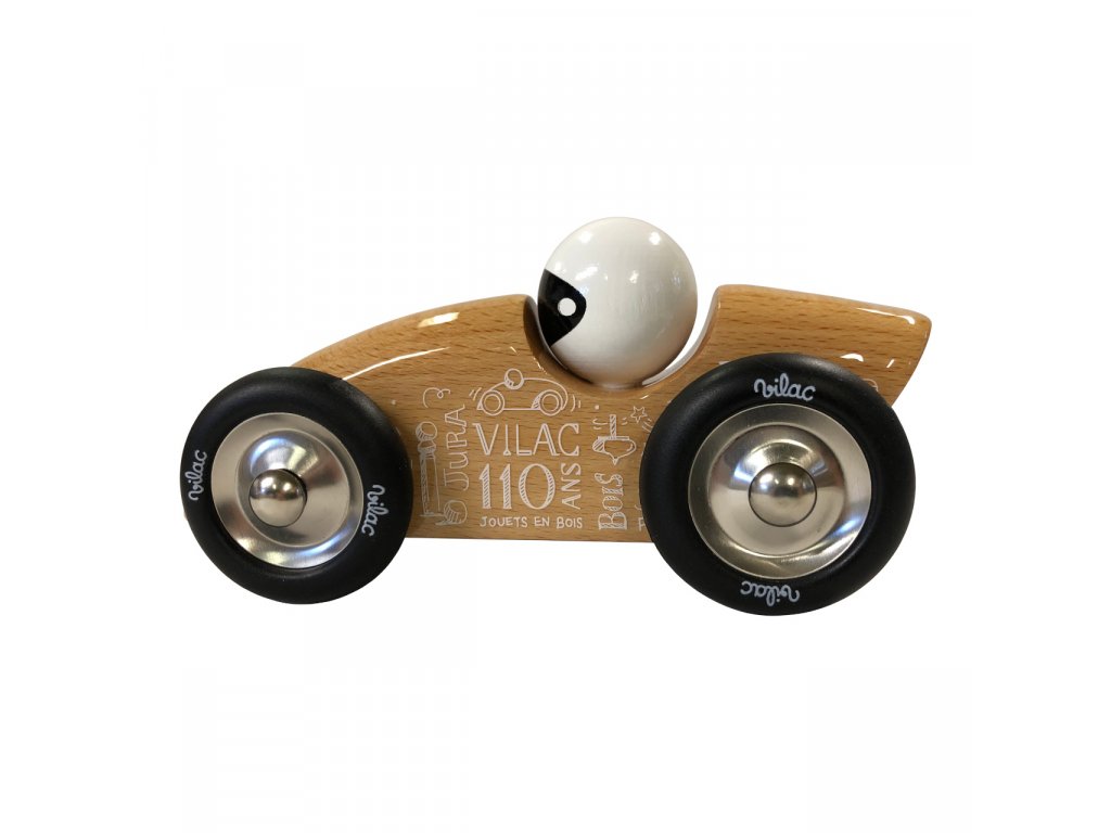 Jedinečné závodní autíčko dynamického tvaru vhodné jako hračka pro děti, předmět sběratelství i dekorace interiéru. V této jedinečné, limitované úpravě bylo vydáno k oslavě 110. výročí založení výrobce Vilac. Tělo autíčka je dřevěné, lakované tradičním procesem ponořování do lázní s barvou. Velmi odolná kola z kombinace kovu a plastu se vyznačují hladkým chodem. Vyrobeno ve Francii, dodáváno v prémiové krabičce. Hlavní vlastnosti: limitovaná edice 110. výročí načky Vilacjedinečný design a zpracovánívyrobeno ve Francii