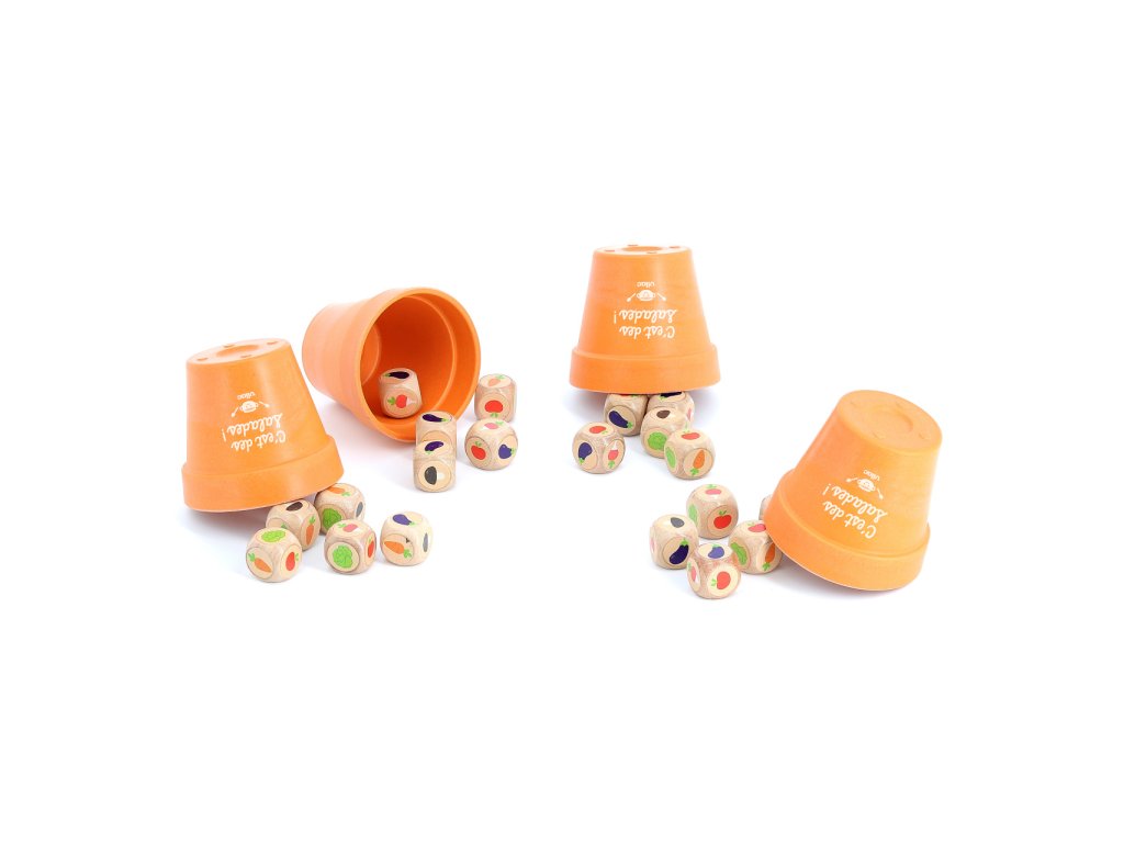 Originální varianta tradiční chilské hry Dudo prověří Vaše logické a strategické myšlení. Cílem každého z hráčů je uhodnout, kolikrát na kostkách padl stejný druh zeleniny, a připravit tím soupeře o všechny jejich kostky. Pravidla jsou snadno pochopitelná a přístupná všem věkovým kategoriím. Unikátní zpracování s motivy zeleninové zahrady zaujme, pobaví a nepřímo vybízí, abyste si zahráli pod širým nebem. Kelímky na kostky v podobě květináčů jsou vyrobeny z ekologické pryskyřice. Hlavní vlastnosti: 4 kelímky a 20 kostekpro 2–4 hráčejedinečný design a zpracování Zkrácený návod hry:Cílem hráčů je mít na konci hry alespoň jednu kostku. Na začátku kola si každý hráč zamíchá kostky v kelímku a to jeho zatřesením. Kelímek poté položí na stůl tak, aby pod sebou kostky skrýval. Diskrétně se na hozené kostky podívá, před ostatními hráči musí zůstat skryté.Hraje se několik kol, na konci každého jeden z hráčů získá nebo ztratí kostku. Hráči se během kola střídají v sázení, pořadí si určí sami. Při sázce hráč oznámí celkový počet stejných obrázků (např. 5 rajčat), které si myslí, že se budou skrývat pod kelímky všech hráčů. Další hráč na řadě pak může sázku zvýšit, může pochybovat nebo může souhlasit.Blafování je tudíž nedílnou součástí hry, hráč může sázet falešně, aby obelhal protihráče. Je také dovoleno na ostatní mluvit a snažit se tak ovlivnit jejich volbu.Na druhou stranu je švindlování nebo pokus o něj potrestán ztrátou jedné kostky.