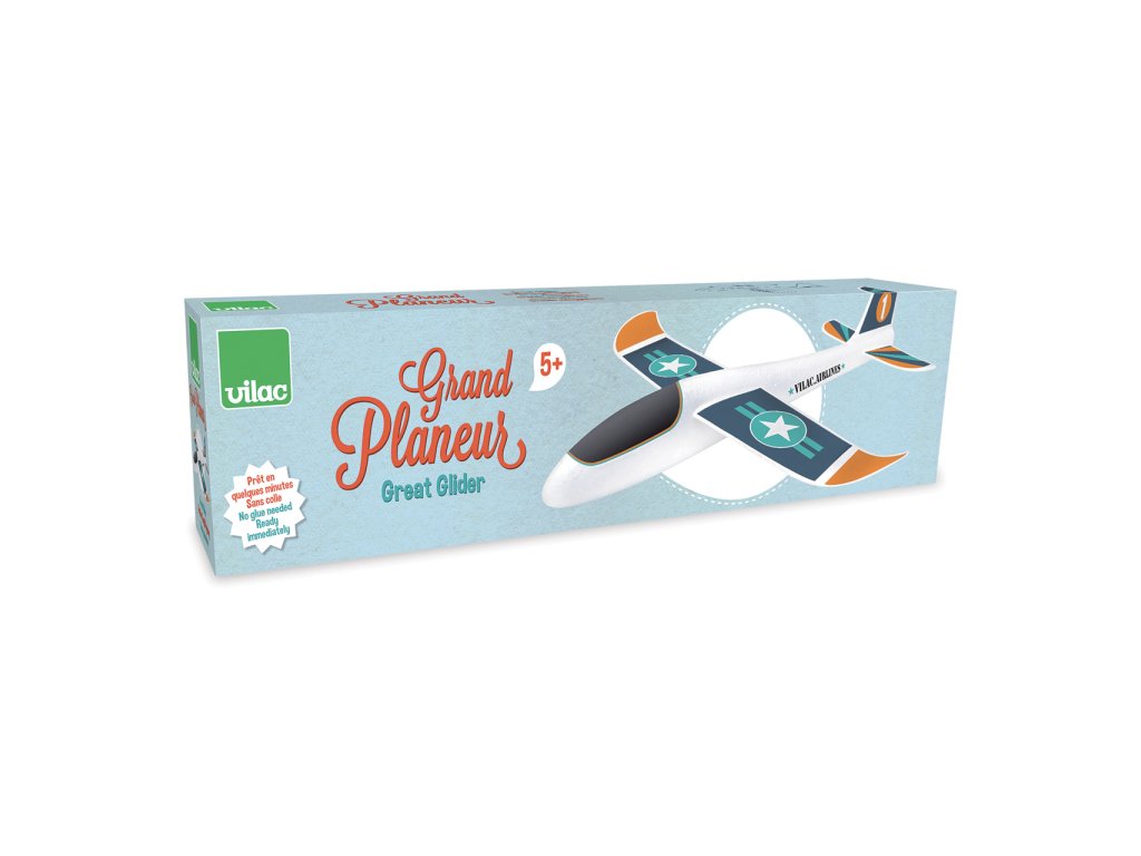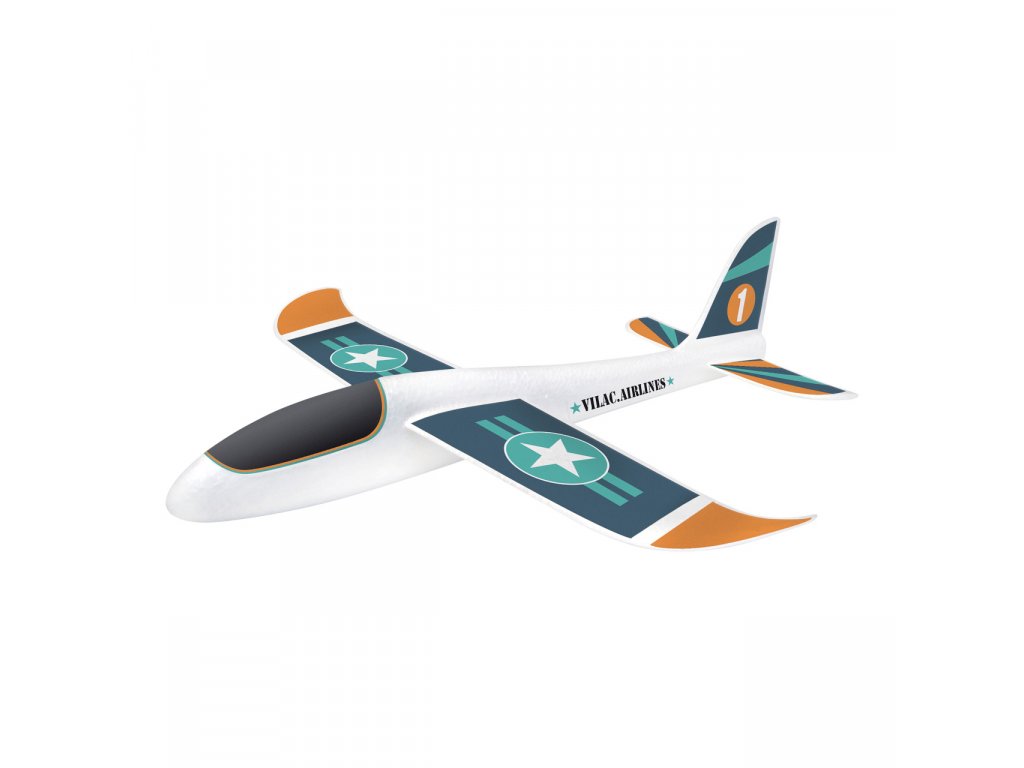 Velký kluzák připraven k odletu. Vyroben z polystyrenu, ozdoben nálepkami. Nepotřebujete lepidlo. Hlavní vlastnosti: vyrobeno z lehkého polystyrenu