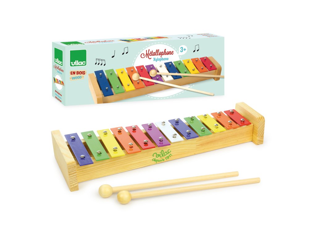 Vícebarevný xylofon, díky kterému se menší děti naučí poznávat barvy a starší skládat melodie. Hlavní vlastnosti: dřevěný xylofón s 12 kovovými klapkamipodporuje kreativitu a cit pro rytmus