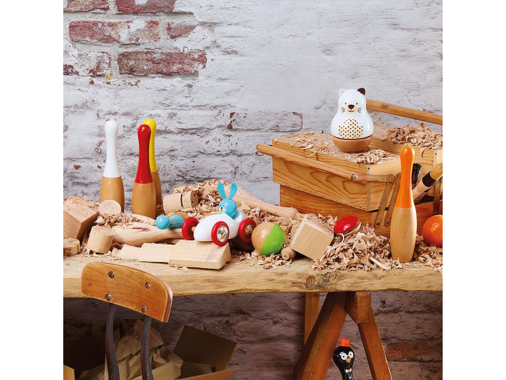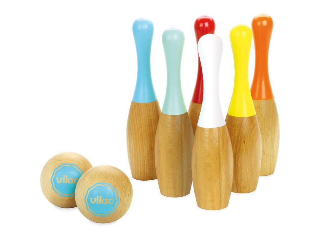 Sada 6 kuželek z lakovaného dřeva. Kuželky jsou napůl přírodní a napůl barevné. V praktickém balení naleznete také 2 dřevěné koule. Zabaleno v bavlněném pytlíku. Vyrobeno ve Francii. Hlavní vlastnosti: vyrobeno z odolného dřevabaleno v praktickém látkovém pytlíkuobsahuje 6 kuželek a 2 hrací koulevyrobeno ve Francii
