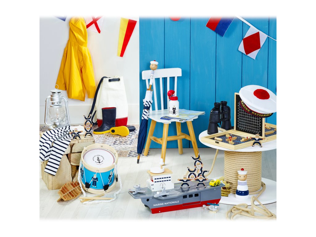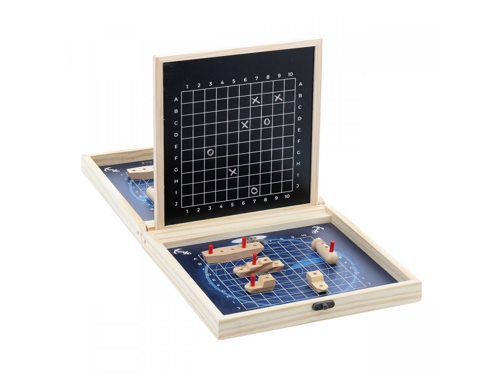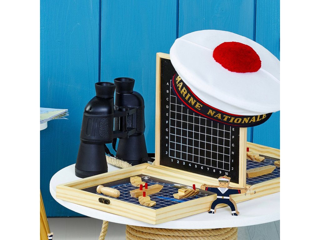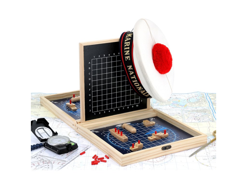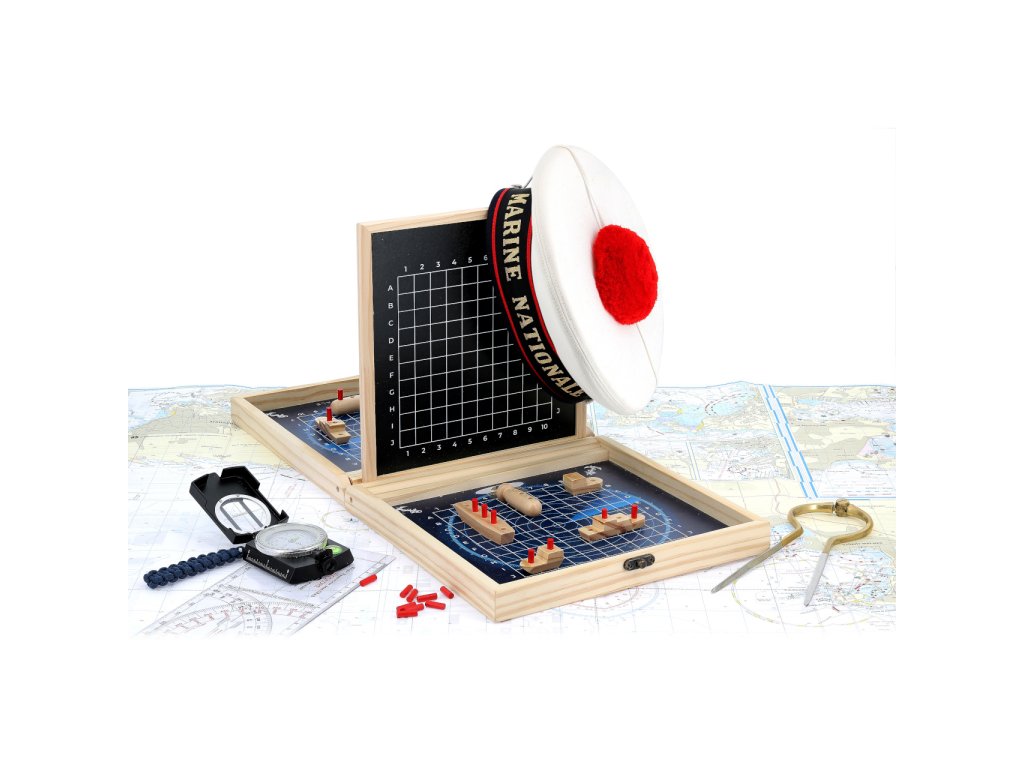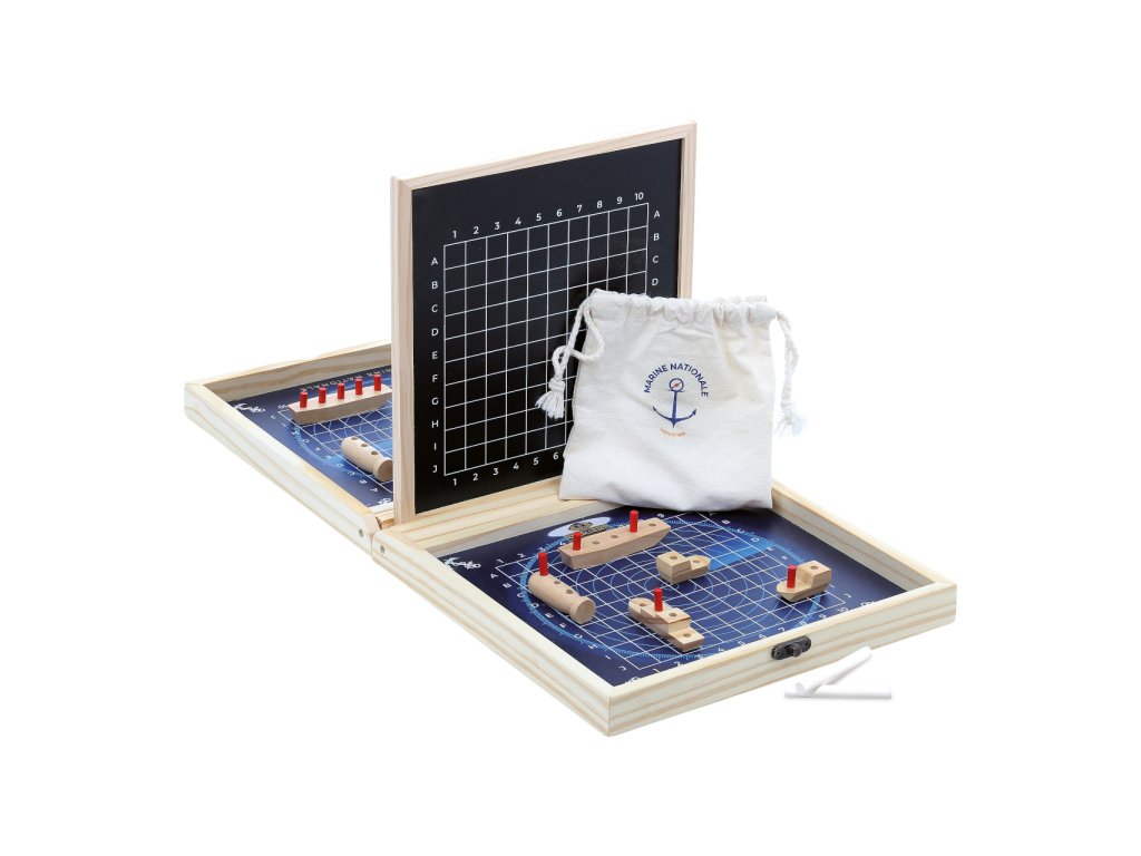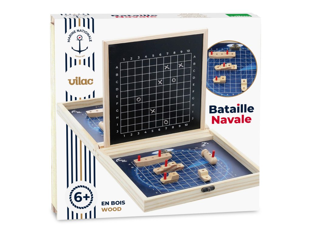 Klasická strategická hra v přenosném dřevěném kufříku, s motivy francouzského námořnictva může dětem pomoci zábavnou formou rozvíjet poznávací dovednosti. Cílem hry je střídavým tipováním v souřadném systému jako první odhalit pozice protihráčovy flotily a potopit ji. Kufřík se po rozložení promění na hrací pole oddělené přepážkou, jejíž povrch je přizpůsoben k psaní křídou. Křídy jsou součástí balení a slouží hráčům k zaznamenávání vývoje hry. Sady loděk různých velikostí a tvarů jsou spolu s tyčinkami označujícími případné zásahy baleny ve dvou dekorovaných textilních sáčcích. Herní dílky jsou vyrobeny z masivního, pečlivě opracovaného dřeva. Díky praktickému kufříku lze hru vždy snadno uklidit a může děti provázet na cestách. Hlavní vlastnosti: kufřík s herním plánem, 10 lodí, 40 tyčinek, 2 sáčky a 2 křídyatraktivní a odolné dřevěné zpracovánípraktické balení Šťastnou plavbu! To je přání námořníkům, kteří vyráží na moře. Toto přeje i Vilac, se svou kolekcí, kterou vyvinuli ve spolupráci s francouzským námořnictvem. Vůni moře vítr dofoukal až do pohoří Jura, výsledek jistě potěší malé námořníky a námořnice, také dospělé, kteří pečují o své vnitřní dítě!