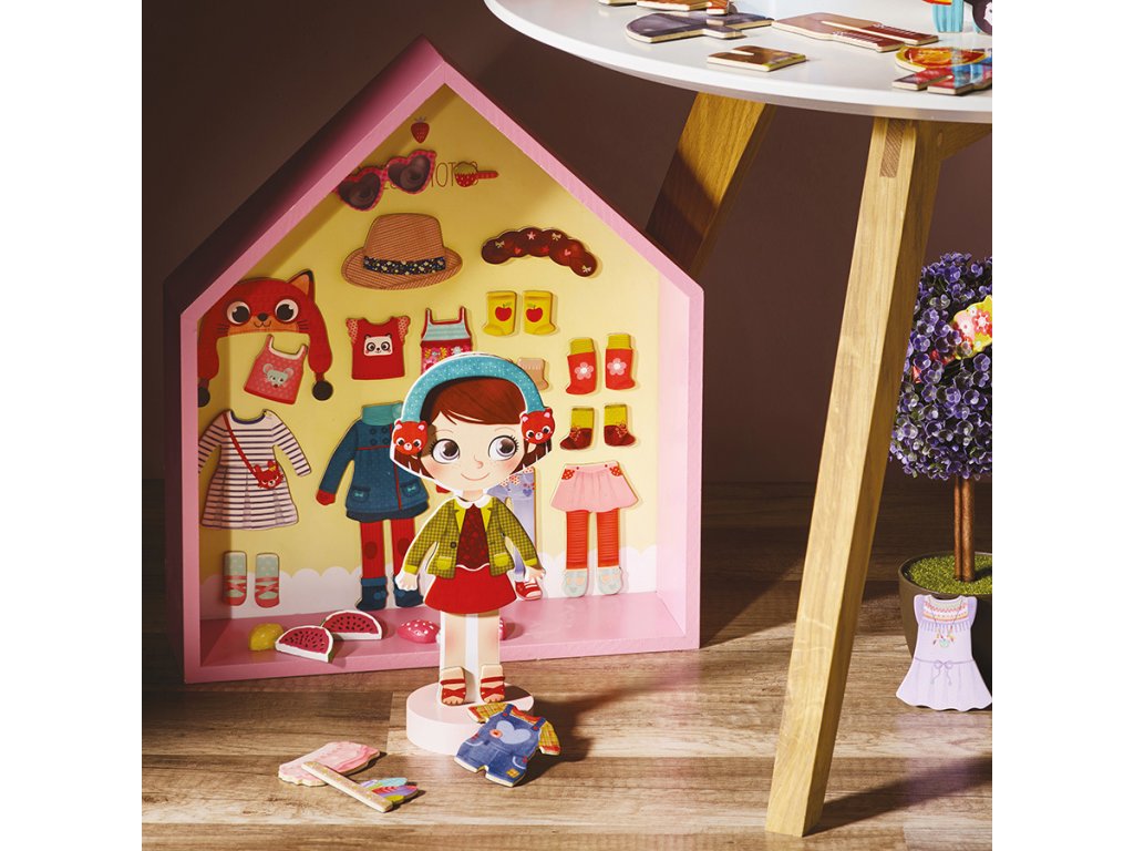 Oblečte Chloe do různých outfitů! Dřevěná, 22 cm vysoká, magnetická panenka s 37 magnetickými dílky oblečení a doplňků. Hlavní vlastnosti: 1 figurka na dřevěném podstavci vysoká 22 cmobsahuje 37 dílků oblečení a doplňkůvyrobeno ekologicky, šetrně k životnímu prostředí