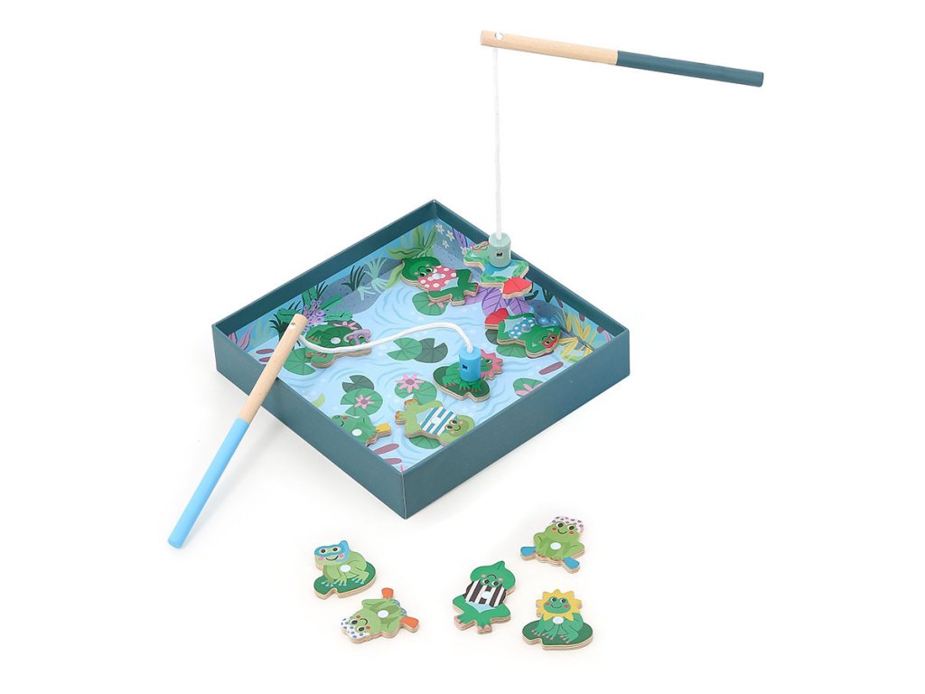 Rybaření s rybičkami? To umí každý. Buďte originální a naučte se rybařit s žabkami od ilustrátorky Michelle Carlsund. K dispozici je celkem 12 roztomilých žab, každá v jiném tvaru i barevném designu. Chyťte je všechny! Každá žabka má na zadní straně různý počet teček, které označují body. Při hře tedy nezáleží na tom, kolik žab hráč vytáhne, ale nakonec se na již vytažených žabkách spočítají body a vyhrává ten, kdo má bodů více. Hra stimuluje kognitivní vývoj vašeho dítka. Rozvíjí koordinaci ruka-oko a jemnou motoriku. Podporuje také smyslové a vzdělávací učení. Žabky jsou uloženy v krabičce, která se otevřením přemění na herní základnu. Hra obsahuje: 12 dřevěných magnetických žab, 2 dřevěné pruty s magnetem a 1 herní krabičku/základnu Hlavní vlastnosti: klasická hra v inovativním designuinspirováno Montessori hračkamirozvíjí soustředění a trpělivostnapomáhá učení počítání a zapamatování siučí o barvách a tvarechúložná krabička, která se přemění na herní základnuvhodné od 2 let Cestujte s námi v naivním a elegantním světě dánské ilustrátorky Michelle Carlslund, světě jemných barev, který je plný roztomilých medvědů a přátelských ptáčků. V roce 2010, když Michelle ještě studovala grafický design, vytiskla doma své ilustrace a zkusila je prodat na designovém trhu, kde se setkaly s velkým úspěchem! Několik obchůdků chtělo začít prodávat její výtvory, a tak ji napadlo, že by bylo fajn začít podnikat. Michelle se rychle stala uznávanou nezávislou ilustrátorkou. Dnes lze její ekologická grafická díla zakoupit po celém světě v designových buticích, papírnictvích a dětských obchodech. Michelle se inspiruje vším kolem ní. Její výtvory jsou něžné a poetické, stylizovaný a dětinský styl, který se perfektně prolíná s hračkami firmy Vilac. „Jsem hranolky milující, časová optimistka a tvůrkyně ekologických plakátů a ilustrátorka na volné noze se sídlem v dánské Kodani,“ to by řekla ilustrátorka Michelle Carlslundová, kdyby se měla popsat jednou větou.