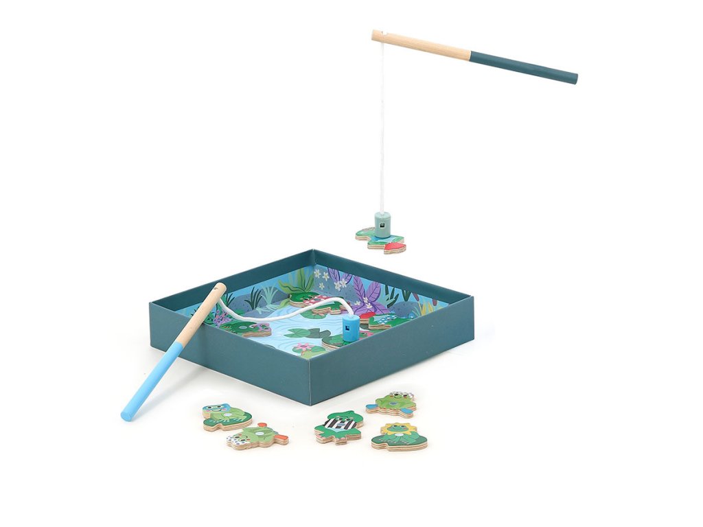 Rybaření s rybičkami? To umí každý. Buďte originální a naučte se rybařit s žabkami od ilustrátorky Michelle Carlsund. K dispozici je celkem 12 roztomilých žab, každá v jiném tvaru i barevném designu. Chyťte je všechny! Každá žabka má na zadní straně různý počet teček, které označují body. Při hře tedy nezáleží na tom, kolik žab hráč vytáhne, ale nakonec se na již vytažených žabkách spočítají body a vyhrává ten, kdo má bodů více. Hra stimuluje kognitivní vývoj vašeho dítka. Rozvíjí koordinaci ruka-oko a jemnou motoriku. Podporuje také smyslové a vzdělávací učení. Žabky jsou uloženy v krabičce, která se otevřením přemění na herní základnu. Hra obsahuje: 12 dřevěných magnetických žab, 2 dřevěné pruty s magnetem a 1 herní krabičku/základnu Hlavní vlastnosti: klasická hra v inovativním designuinspirováno Montessori hračkamirozvíjí soustředění a trpělivostnapomáhá učení počítání a zapamatování siučí o barvách a tvarechúložná krabička, která se přemění na herní základnuvhodné od 2 let Cestujte s námi v naivním a elegantním světě dánské ilustrátorky Michelle Carlslund, světě jemných barev, který je plný roztomilých medvědů a přátelských ptáčků. V roce 2010, když Michelle ještě studovala grafický design, vytiskla doma své ilustrace a zkusila je prodat na designovém trhu, kde se setkaly s velkým úspěchem! Několik obchůdků chtělo začít prodávat její výtvory, a tak ji napadlo, že by bylo fajn začít podnikat. Michelle se rychle stala uznávanou nezávislou ilustrátorkou. Dnes lze její ekologická grafická díla zakoupit po celém světě v designových buticích, papírnictvích a dětských obchodech. Michelle se inspiruje vším kolem ní. Její výtvory jsou něžné a poetické, stylizovaný a dětinský styl, který se perfektně prolíná s hračkami firmy Vilac. „Jsem hranolky milující, časová optimistka a tvůrkyně ekologických plakátů a ilustrátorka na volné noze se sídlem v dánské Kodani,“ to by řekla ilustrátorka Michelle Carlslundová, kdyby se měla popsat jednou větou.