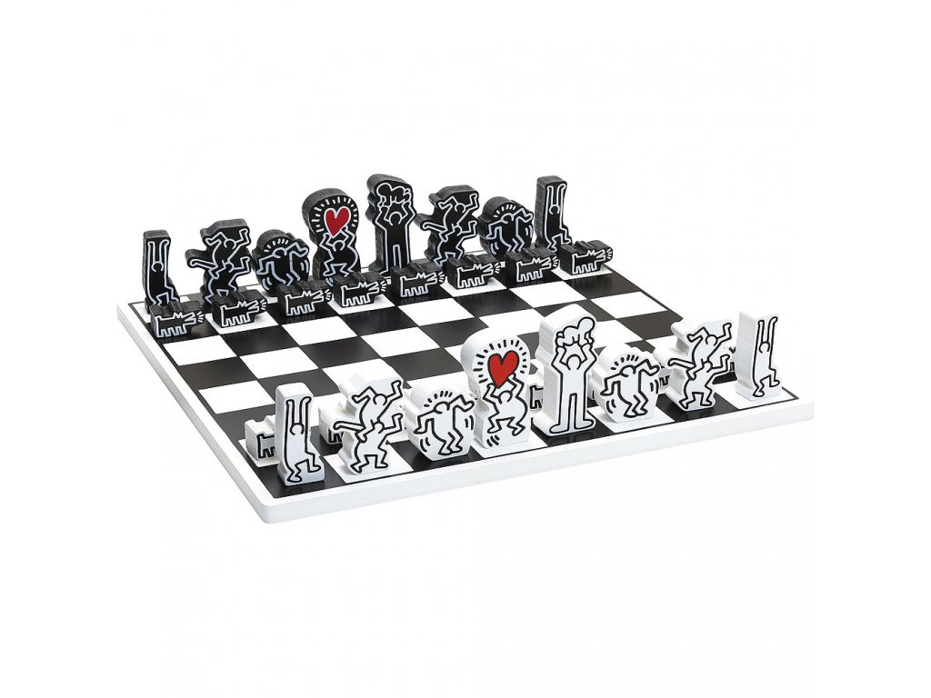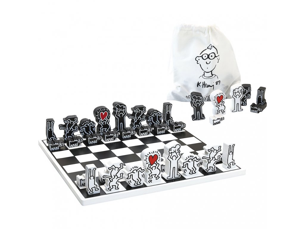 Extravagantně ilustrované dřevěné šachy, které si jistě najdou místo na poličce, jako dekorace. Produkt, který prostě musí mít každý fanoušek dizajnu a Keitha Haringa. Hlavní vlastnosti: tradiční hra v moderním kabátědesign Keith Haring Keith Haring (1958–1990) byl umělec a aktivista, který často používal své umění k vyjádření názoru na různé sociální problémy. Byl jedním z nejznámějších mladých umělců mezi filmaři, umělci a hudebníky, jejichž tvorba reagovala na městskou pouliční kulturu osmdesátých let. V roce 1989 mu byl diagnostikován AIDS, Keith Haring tak založil nadaci za účelem poskytnutí financování a využití svého umění organizacím bojujícím proti AIDS na celém světě, aby zajistil, že jeho filantropický odkaz bude pokračovat neomezeně. Posláním Nadace Keitha Haringa je udržovat, rozšiřovat a chránit dědictví Haringova umění a jeho ideálů. Nadace podporuje organizace, které pomáhají znevýhodněným dětem, stejně jako ty, které se zabývají vzděláváním, výzkumem a péčí týkající se HIV a AIDS. Haring Foundation zastupuje Arestar, LLC, mezinárodní společnost pro licencování a poradenství značek, která se specializuje na umění, módu a designové značky.