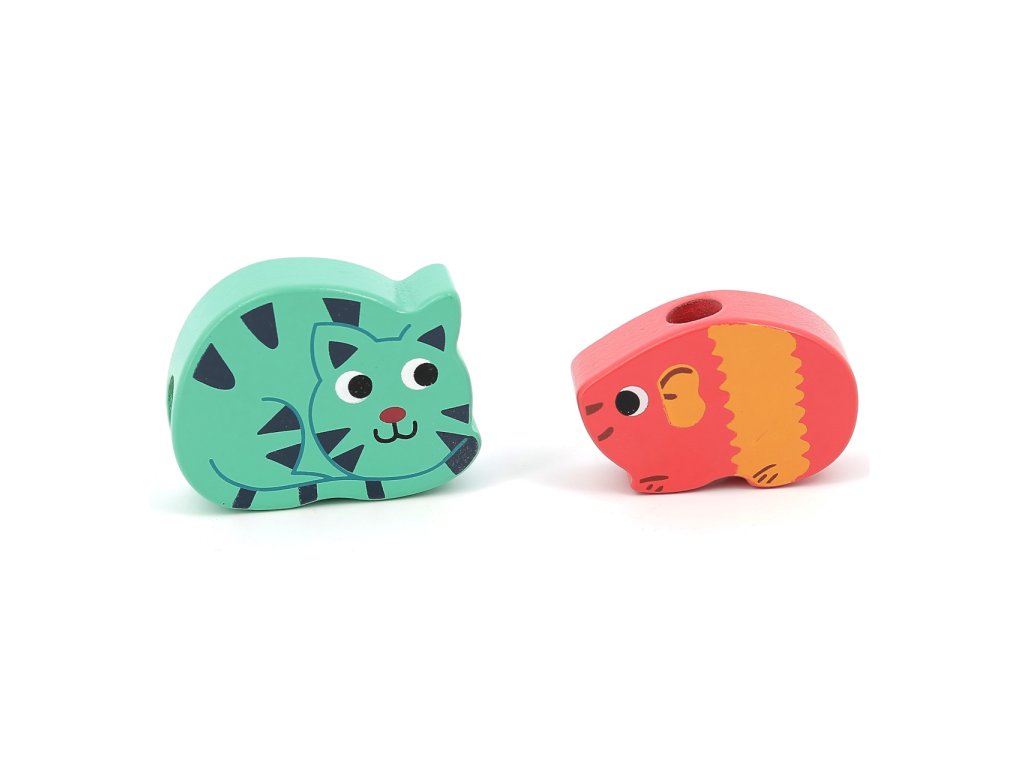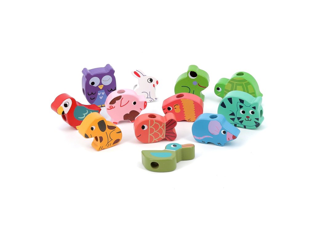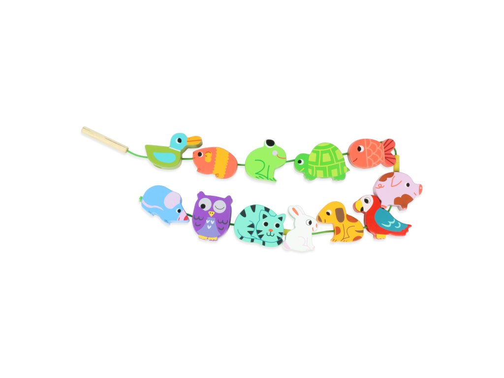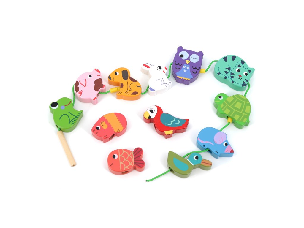 Krásná provlékačka s motivy zvířátek. V kompaktním balení najdete 12 ilustrovaných dřevěných korálků (např. kočka, myš, králík, žába), které děti mohou navlékat na textilní šňůrku. Hračka pomáhá s rozvojem jemné motoriky. Vybaveno bezpečnostními sponami. Vhodné od 18 měsíců. Hlavní vlastnosti: rozvíjí jemnou motoriku12 korálkůvyrobeno ekologicky, šetrně k životnímu prostředí