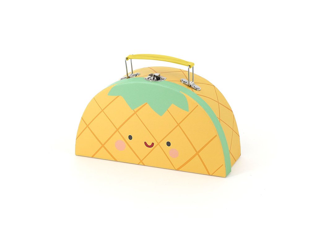 Sada 3 kartonových kufříků, které se dají vložit jeden do druhého, s ilustracemi šťavnatého ovoce - vodního melounu, ananasu a jahod designérky Sarah Betz podněcují představivost a pomáhají rozvíjet jemnou motoriku. Jsou praktické pro ukládání a přepravu hraček a díky nápaditému designu se stanou pěknou dekorací dětského pokoje nebo herny. Stanou se také nezbytným doplňkem při hrách na cestování anebo pro třídění a uspořádání hraček v pokojíčku. Hlavní vlastnosti: 3 kufříky v saděs motivem ovoce zvenčí i uvnitřnápaditý design Sarah Betzna hraní či třídění hračekdoplněk na výlet
