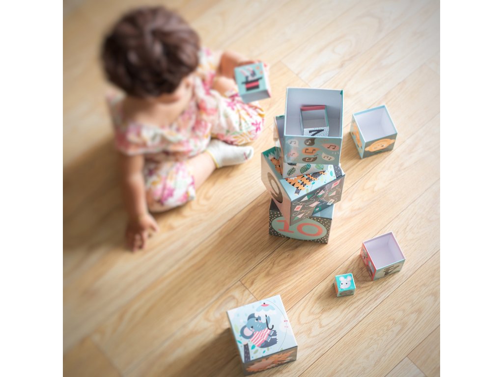 Deset kartonových skládacích kostek s krásnými ilustracemi Michelle Carlslund. Děti se při hraní naučí jak skládat kostky, tak rozpoznávat zvířata, barvy a počty. Rozvíjí koordinaci ruka-oko, a tím celkovou zručnost dětí. Hlavní vlastnosti: 10 ks kostekdesign Michelle Carlslundvyrobeno ekologicky, šetrně k životnímu prostředí Cestujte s námi v naivním a elegantním světě dánské ilustrátorky Michelle Carlslund, světě jemných barev, který je plný roztomilých medvědů a přátelských ptáčků. V roce 2010, když Michelle ještě studovala grafický design, vytiskla doma své ilustrace a zkusila je prodat na designovém trhu, kde se setkaly s velkým úspěchem! Několik obchůdků chtělo začít prodávat její výtvory, a tak ji napadlo, že by bylo fajn začít podnikat. Michelle se rychle stala uznávanou nezávislou ilustrátorkou. Dnes lze její ekologická grafická díla zakoupit po celém světě v designových buticích, papírnictvích a dětských obchodech. Michelle se inspiruje vším kolem ní. Její výtvory jsou něžné a poetické, stylizovaný a dětinský styl, který se perfektně prolíná s hračkami firmy Vilac. „Jsem hranolky milující, časová optimistka a tvůrkyně ekologických plakátů a ilustrátorka na volné noze se sídlem v dánské Kodani,“ to by řekla ilustrátorka Michelle Carlslundová, kdyby se měla popsat jednou větou.