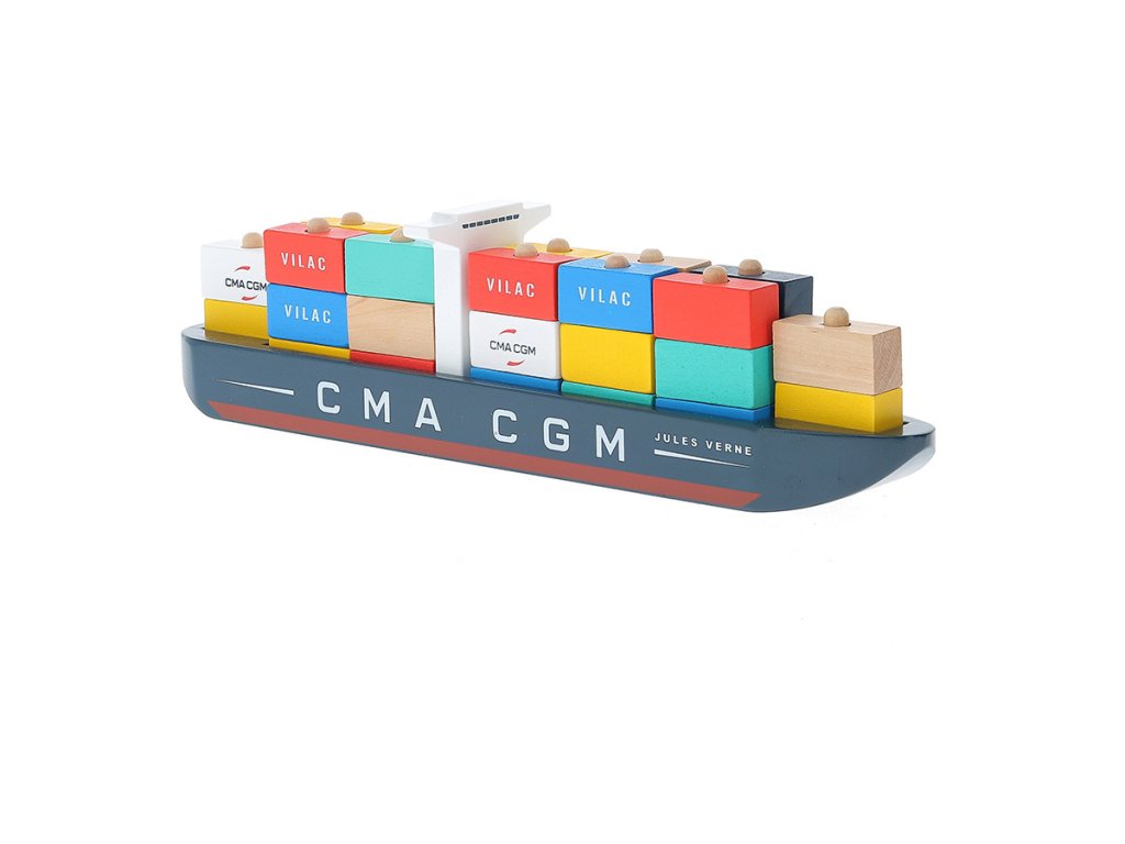Celodřevěná kontejnerová loď Jules Verne CMA CGM. Naložte loď kontejnery a připravte ji k vyplutí. Hračka je vhodná i jako dekorace. Obsahuje 35 dílků. Hlavní vlastnosti: obsahuje 35 dílkůprocvičuje jemnou motoriku dětívhodná i jako dekorace
