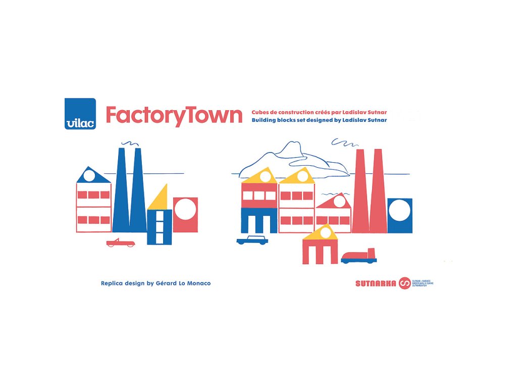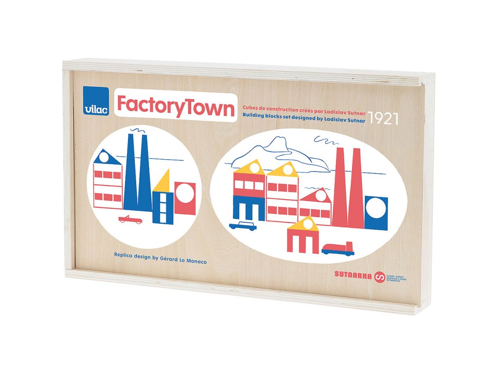 Propracovaná vzdělávací kostková hra je jedinečná díky jasným barvám a jednoduchým geometrickým tvarům od designera Ladislav Sutnara. Ladislav Sutnar byl průkopníkem grafického designu a se svými současníky z uměleckého hnutí Bauhaus sdílel nadšení pro jasné barvy a jednoduché geometrické tvary.Jako herní designér vytvořil v roce 1921 „Factory Town“ (Tovární Město), velmi sofistikovanou vzdělávací hru s kostkami, kterou Vilac znovu vydává o 100 let později ve spolupráci s umělcem Gérardem Lo Monacem a Fakultou designu a umění Ladislava Sutnara.Na světě stále existují 3 jedinečné původní kopie, jedna z nich je vystavena v MoMa v New Yorku. Hlavní vlastnosti: rozvíjí jemnou motoriku dětízprostředkovává základní chápání principů urbanismuznovu vydaná hra jejimž tvůrcem byl Ladislav Sutnarvytvořeno Vilacem ve spolupráci s umělcem Gérardem Lo Monacem a Fakultou designu a umění Ladislava Sutnara z České republikyobsahuje 33 dílů Ladislav Sutnar:Ladislav Sutnar (1897–1976) byl světoznámý umělec původem z Plzně. Narození prvního syna inspirovalo Sutnara k tvorbě hraček, které by děti bavily a zároveň je i něco naučily. Takzvané století dítěte bylo v té době už v plném proudu a umění a design reagovaly na bezmeznou dětskou představivost. Hrát si je základ – hry rozvíjí empatii a vytváří smysl pro sounáležitost. Sutnarovy stavebnice elegantního designu do světa dětí skvěle zapadají. Rozvíjí jemnou motoriku a zprostředkovávají základní chápání principů urbanismu. Stavebnice nazvaná v angličtině Factory Town, tedy Tovární městečko, je pro děti příležitostí osvojit si různé hodnoty a získat smysl pro práci s prostorem.