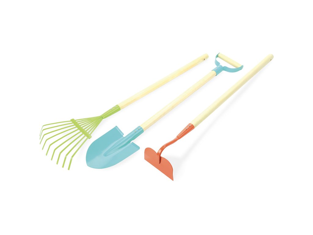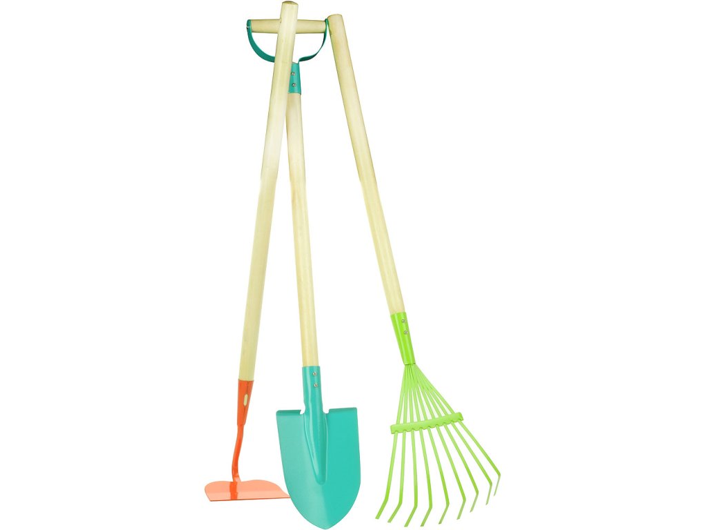 Velký zahradnický set obsahuje rukavice, motyku, hrábě a rýč. Zahradničte jako profesionálové! Skvělá hračka, která děti učí péči o zahradu. Vyrobeno z kovu a dřeva. Hlavní vlastnosti: ideální velikost pro dětirozvíjí motoriku, rovnováhu a vztah k příroděvyrobeno z kovu, dřevěná násada