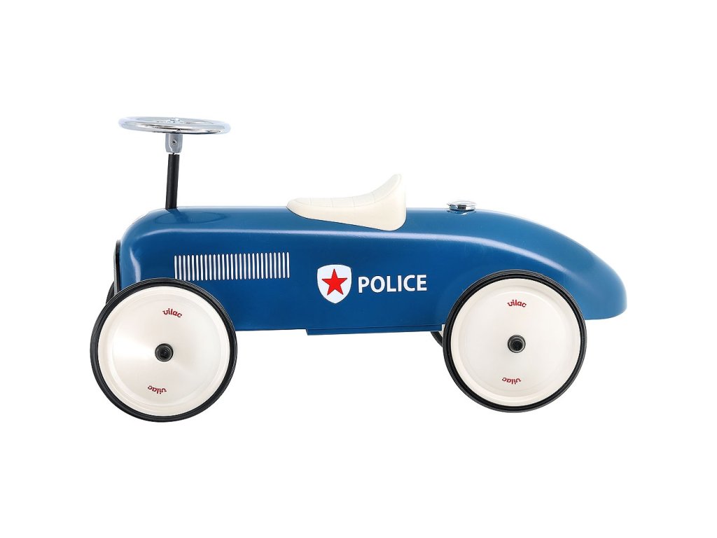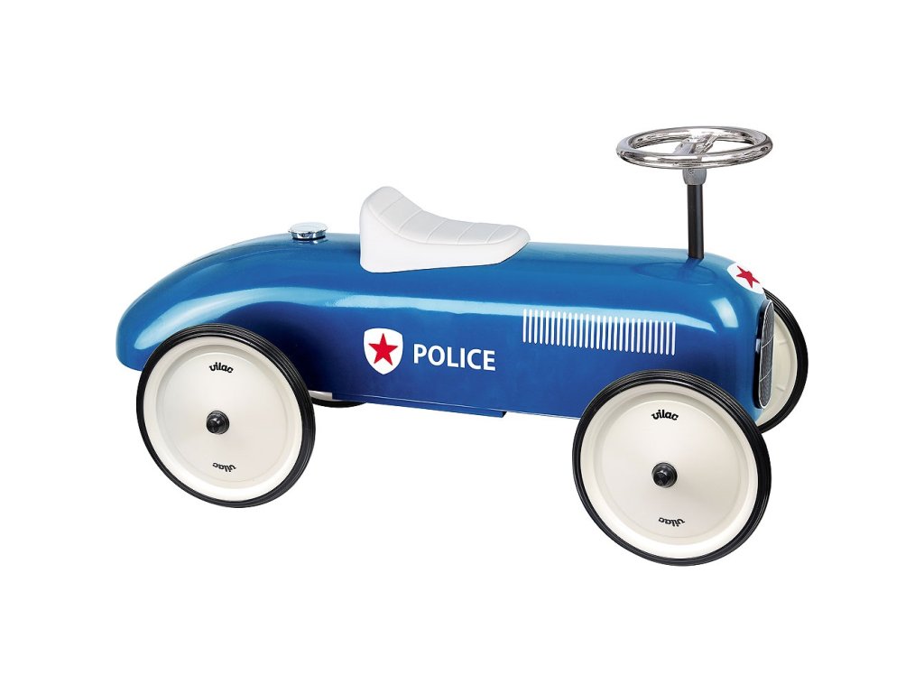 Odrážedlo Vintage ve stylu policejního auta je plně kovové, má modrou metalickou barvu a znak policie. Volant ovládá zatáčení předních kol. Bílé sedadlo je vyrobeno z plastu. Kola odrážedla jsou pogumovaná a zaručují tak tichý chod i na pevném povrchu. Hlavní vlastnosti: stabilní kovové odrážedlo s pogumovanými kolystylový originální designenosnost 20 kg