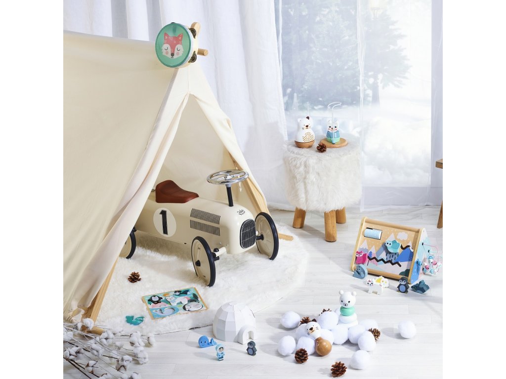 Odrážedlo Vintage ve stylu závodního auta je plně kovové a má krémovou metalickou barvu. Volant ovládá zatáčení předních kol. Hnědé sedadlo je vyrobeno z plastu. Kola odrážedla jsou pogumovaná a zaručují tak tichý chod i na pevném povrchu. Hlavní vlastnosti: stabilní kovové odrážedlo s pogumovanými kolystylový originální designnosnost 20 kg
