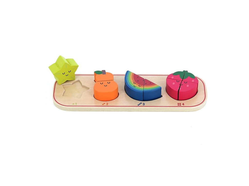 Obsahuje: 1 dřevěná vkládací podložka a 10 dílků ovoce