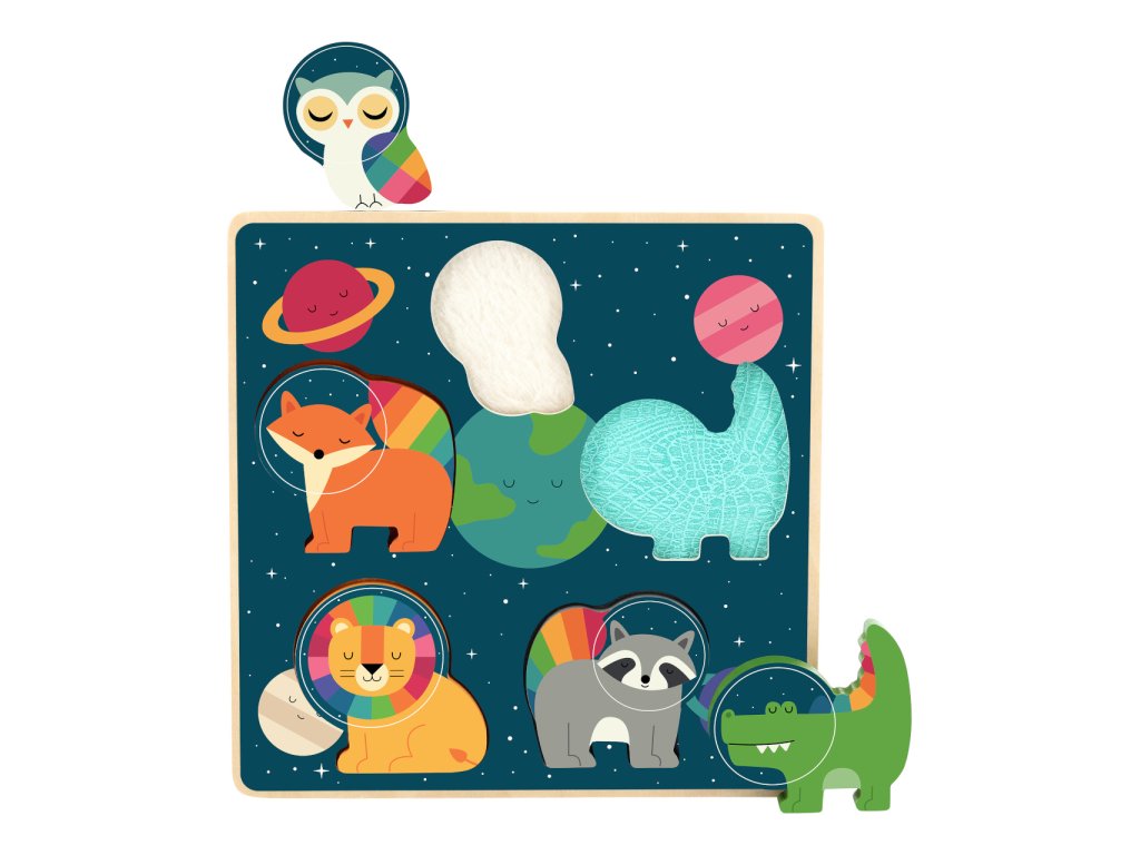 V doprovodu pestrobarevných zvířecích vesmírných průzkumníků Andyho Westface mohou Vaši nejmenší zábavně rozvíjet rozpoznávání tvarů, hmat a jemnou motoriku. Jednoduchá vkládačka ukrývá pod každým z dílků jinou plastickou texturu, kterou rožšiřuje škálu vjemů a umožňuje dítěti poznávat a rozlišovat rozdílné povrchy. Hračka je vyrobena z odolného dřeva příjemného na dotek a stimulujícího smysly. Svým originálním motivem a barevností se snadno stane nepřehlédnutelnou ozdobou dětského pokojíčku. Hlavní vlastnosti: základna a 5 vkládacích dílkůrozmanité hmatové atrakcedesign Andy Westfacerobustní a odolné dřevěné provedení Andy Westface je ilustrátor žijící a působící v Hongkongu. Svou prací se snaží zprostředkovat silné pocity a jasné myšlenky za pomoci jednoduchých tvarů, kompozic i barevnosti. Typickými prvky jeho děl jsou zvířata a duha, které si oblíbil pro jejich čistotu, upřímnost a schopnost vzbuzovat radost.