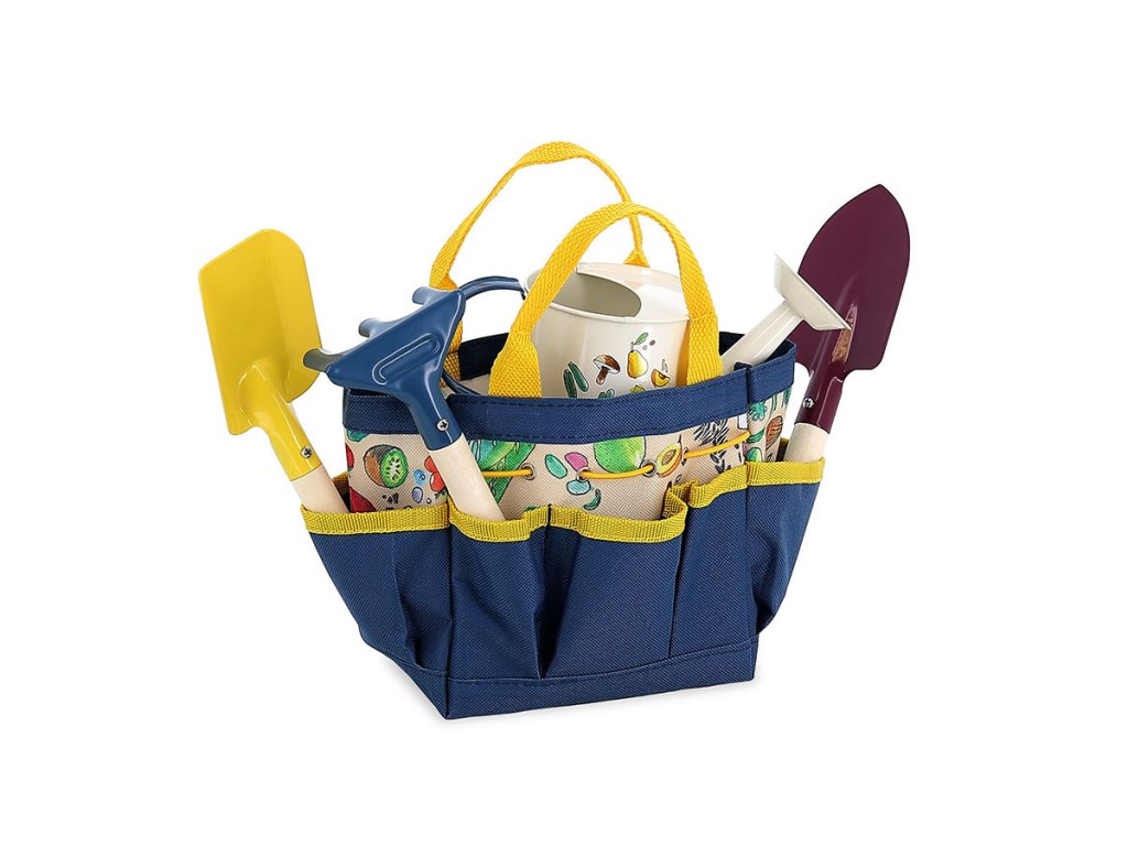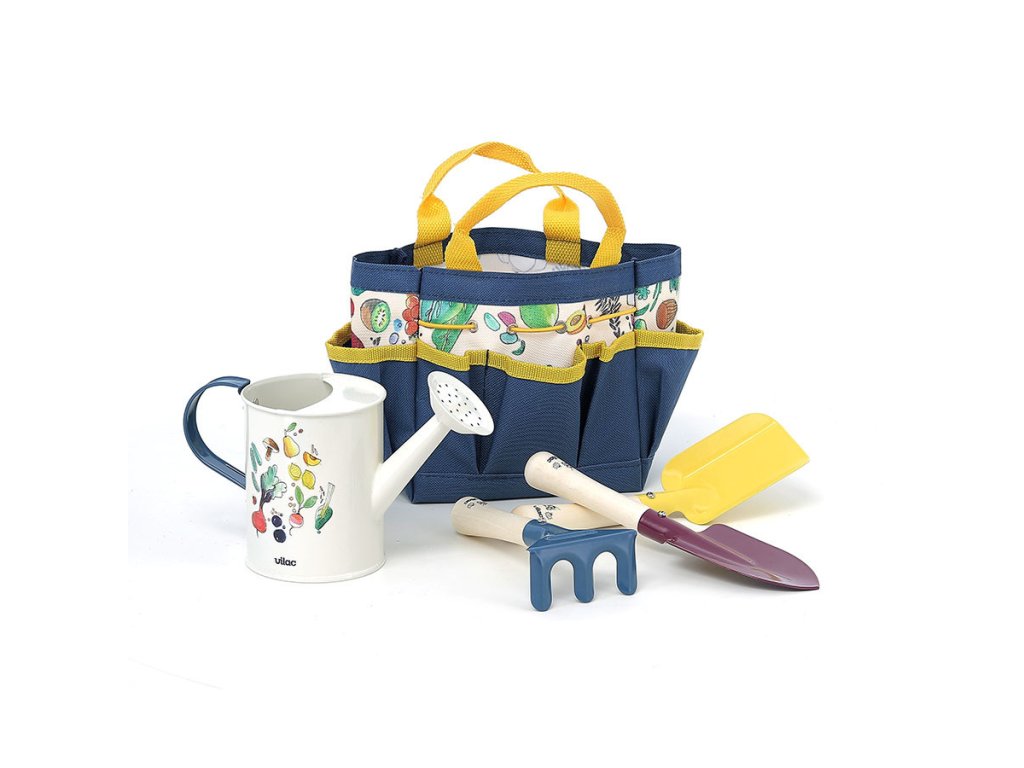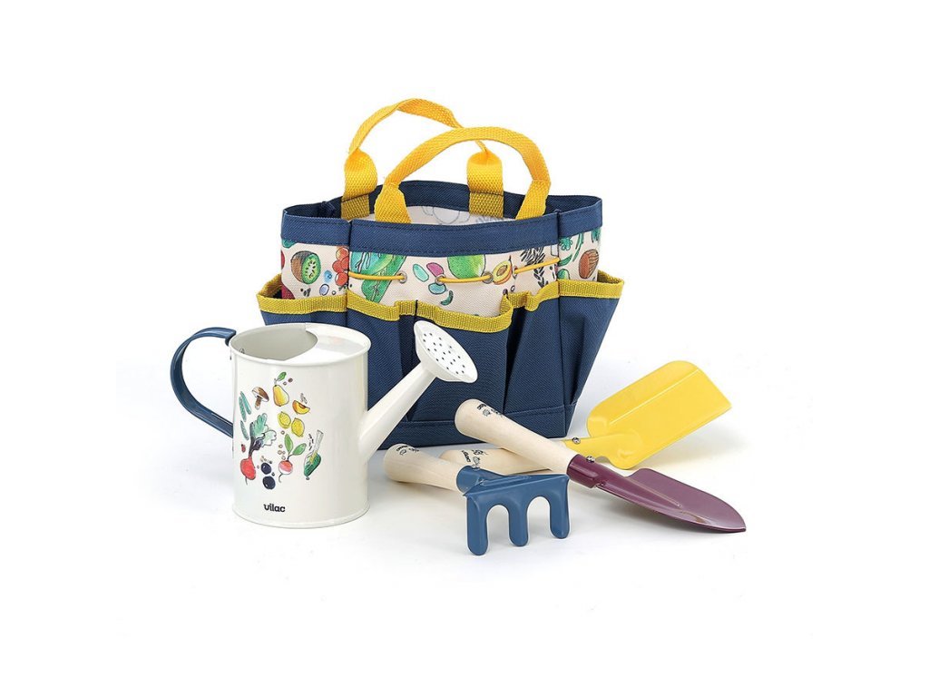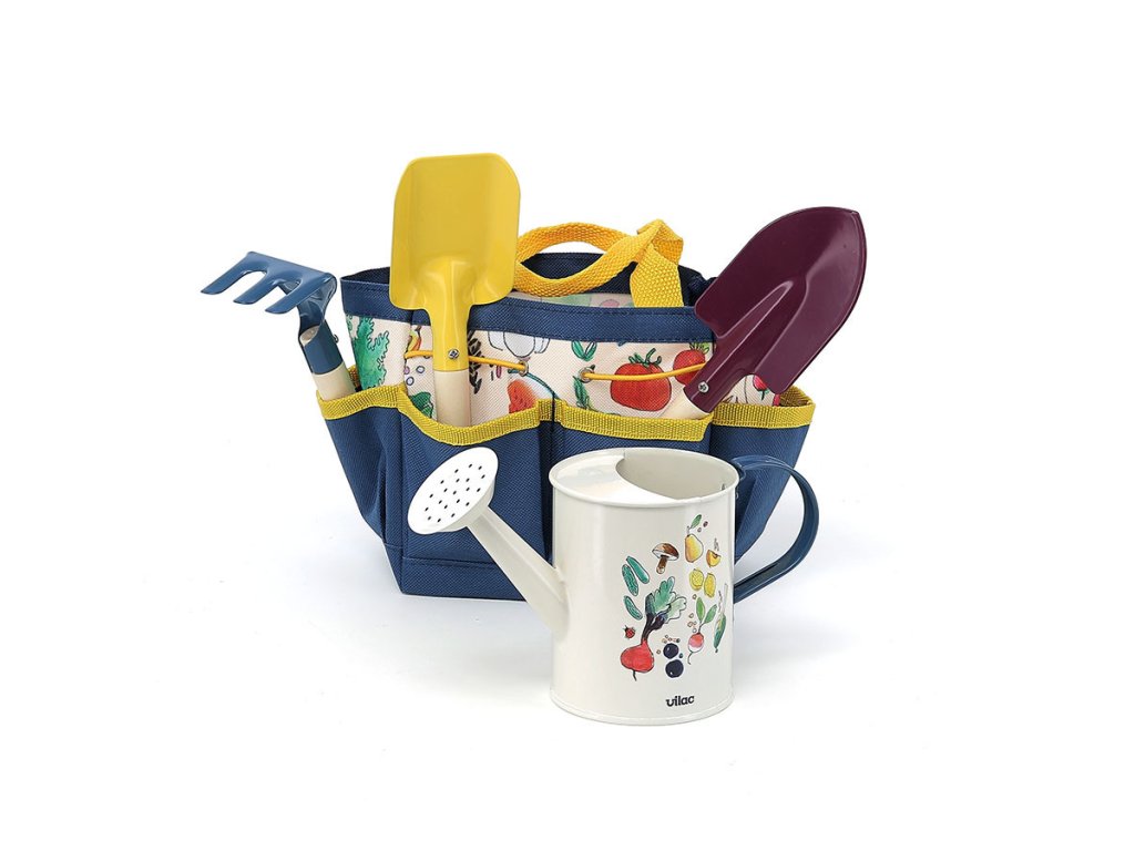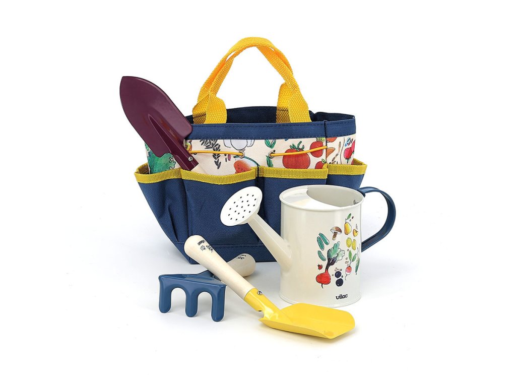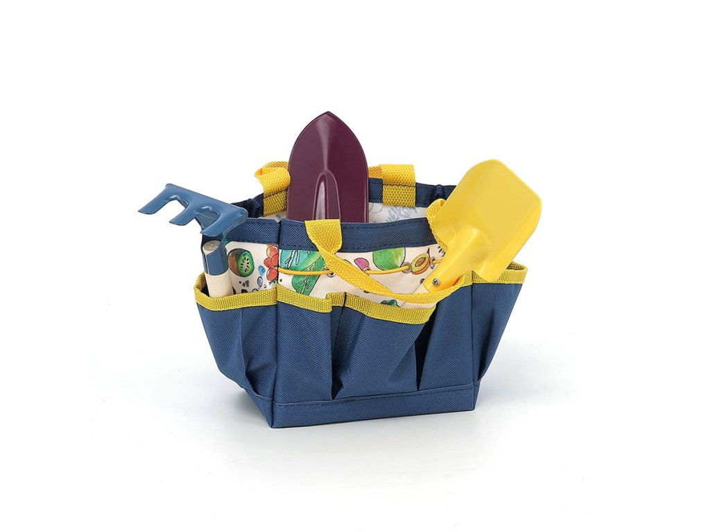 Připravte své malé zahradníky na venkovní dobrodružství s naším zahradním nářadím. I malí zahradníci a zahradnice mohou na zahradě udělat velké věci. Tento velmi kvalitní zahradnický set obsahuje lopatku, hrábě, rýč a konvičku. Zahradní brašna má ale mnoho úložného místa, takže do ní můžete uložit až 7 zahradních nástrojů. Brašna se dá jednoduše vyprat, nářadí omýt vodou. Nářadí je vyrobeno z dřeva a kovu, velikostně tak akorát pro dětské ruce. Tak pojďme na zahradu. Hlavní vlastnosti: ideální velikost pro dětirozvíjí motoriku a vztah k příroděvyrobeno z kovu, dřevěná násadataška pro snadné skladování a přenášení