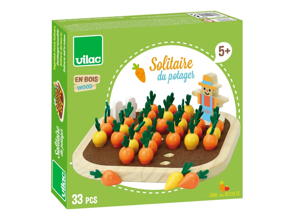 Dnes je den sklizně! Dokážete sklidit všechnu mrkev ze zeleninového záhonku tak, aby na konci zůstala jen jedna? A hop! Originální dřevěná hra solitaire (hra pro 1 hráče) s figurkami ve tvaru malé mrkve pro potěšení labužníků. Hlavní vlastnosti: 33 dřevěných mrkvívyrobeno ze dřeva a plsti