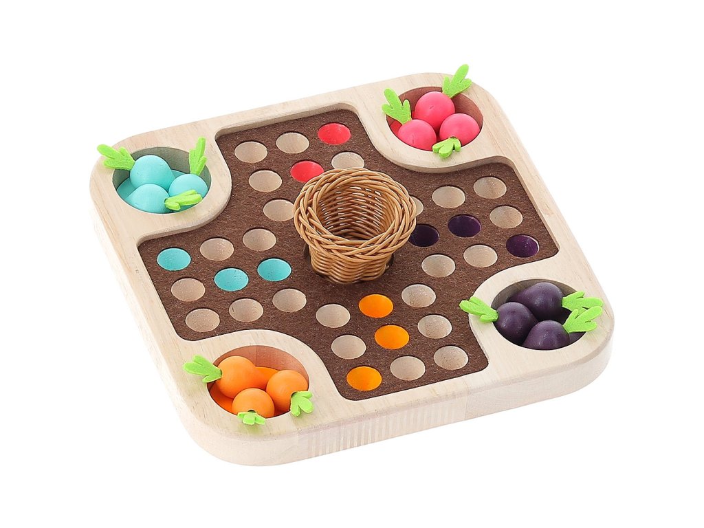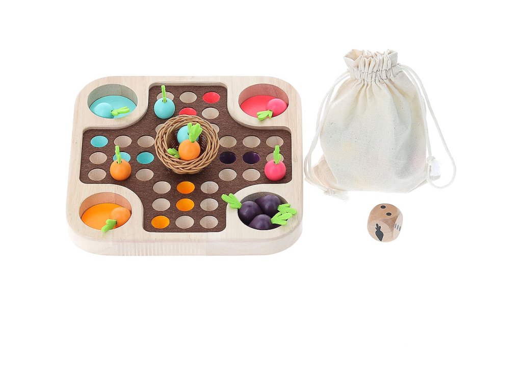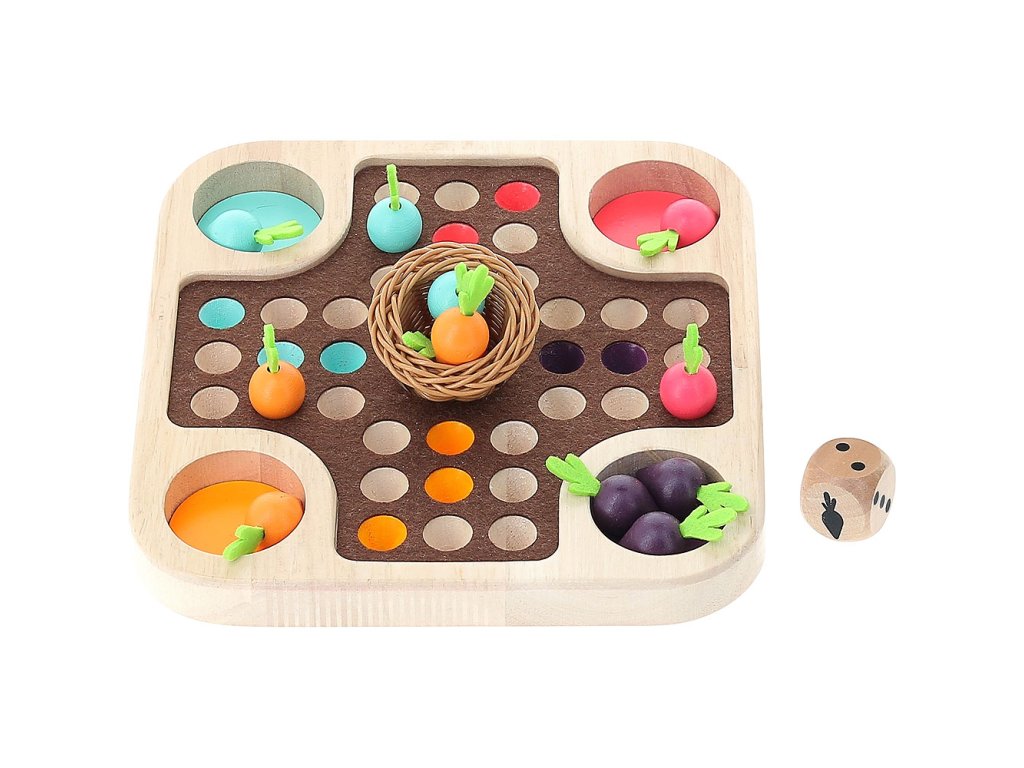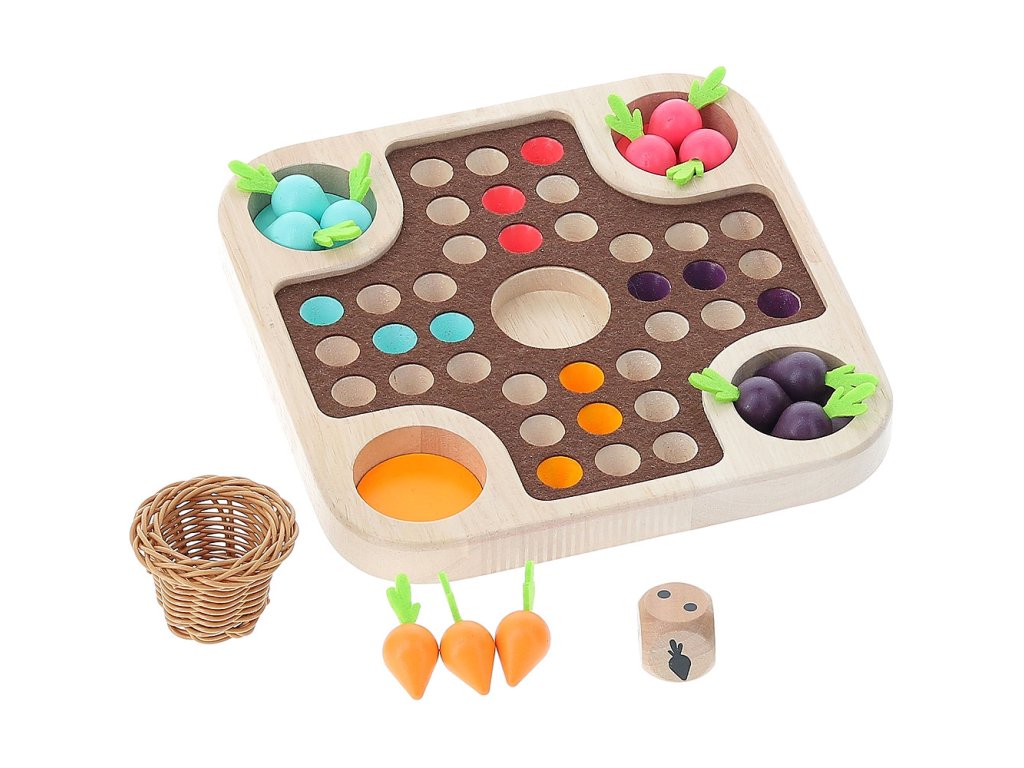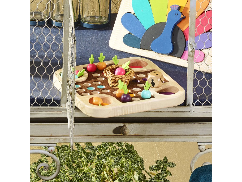Kdo jako první dokončí sklizeň zeleniny do malého košíku? Tradiční hra člověče nezlob se v přírodním designu plná barevných mrkviček a košíčku ve tvaru hnízda uprostřed. Hra je přiupůsobena i nejmenším hráčům tak, aby byla zábavná a přirozená! Hlavní vlastnosti: tradiční hra v originálním vzhledurozvíjí matematické dovednostipřináší zajímavé propojení hry a přírody