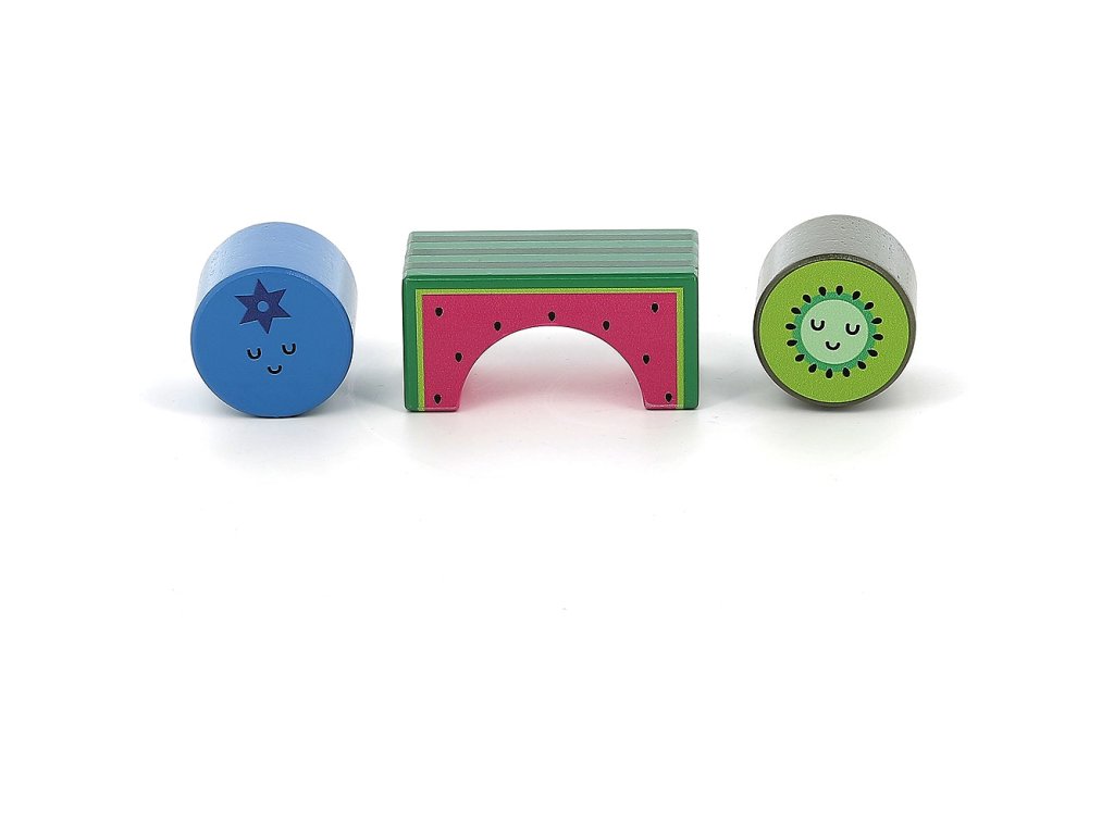 Jedenáct dřevěných zvukových kostek s motivem ovoce. S těmito kostkami si děti procvičí motoriku i zručnost a zároveň budou objevovat různé zvuky. Pro děti velmi poutavá hračka. Ilustrováno Andy Westface. Hlavní vlastnosti: edukativní senzorické kostkyobsahuje 11 kostekdesign Andy Westfacevyrobeno ekologicky, šetrně k životnímu prostředí Andy Westface je ilustrátor žijící a působící v Hongkongu. Svou prací se snaží zprostředkovat silné pocity a jasné myšlenky za pomoci jednoduchých tvarů, kompozic i barevnosti. Typickými prvky jeho děl jsou zvířata a duha, které si oblíbil pro jejich čistotu, upřímnost a schopnost vzbuzovat radost.