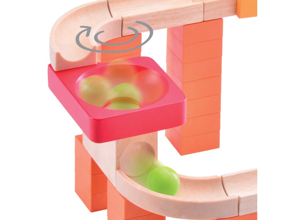 Ukázka kuličkové dráhy Wonderworld TRIX® Kolotoč a vír. S kuličkovými dráhami ze série TRIX® od firmy Wonderworld si užijete spoustu skvělé zábavy. Díky své variabialitě, nápaditosti a propracovanému konceptu celé série TRIX® se jedná o velmi hodnotnou hračku, kterou ocení jak děti, tak dospělí hráči. Všechny kuličkové dráhy ze série TRIX® lze vzájemně kombinovat, a stále tak zvedat laťku kombinací a zábavy. Svou ohromnou variabilitou rozvíjí dětskou představivost, možnosti sestavení jsou téměř nekonečné. Sestavená dráha je vždy stabilní díky promyšlenému a jednoduchému systému spojování dílů. Základní stavební díly jsou vyrobeny z dřevoplastu, vlastní dráha pak převážně z masivního dřeva. Součásti nabízí kvalitní hladkou povrchovou úpravu a kombinaci atraktivních sytých barev s barvou přírodního dřeva. Stavebnice je spolu s obrázkovým návodem k sestavení dodávána v pestře potištěné kartonové krabici vybavené praktickým plastovým uchem k přenášení. Dráhy lze doplnit také drobným příslušenstvím, základními kostkami a ozdobnými kuličkami, které naleznete v naší nabídce. Hlavní vlastnosti:58 dílů celkem, 4 nápadité překážkysystém spojení zaručující stabilituodolné provedenívytříbená barevnost a povrchová úpravalze kombinovat s dalšími dráhami ze sortimentu výrobce Ukázka možné kombinace kuličkových dráh Wonderworld TRIX®. Ukázky možných kombinací dráhy Kolotoč a vír s dalšími dráhami Wonderworld TRIX®: Označení „Správná hračka“ je udělováno produktům, které cílí na děti předškolního věku a vynikají zejména výchovnými kvalitami, ale i vysokým standardem zpracování, komfortem používání a estetickou úrovní. Záměrem tvůrců ocenění je poskytovat vodítko a oslovovat rodiče i pedagogy, kteří chtějí ovlivňovat směřování nabídky a za prvořadý považují zdravý osobnostní rozvoj dětí. Tím chtějí tvůrci podněcovat k rozšiřování a vývoji nových hodnotných hraček či her. Označení je udělováno od roku 1994 a je společným projektem Sdružení pro hračku a hru, Asociace hračka Unie výtvarných umělců ČR a Asociace předškolní výchovy. Tato sdružení společně s Uměleckoprůmyslovým muzeem v Praze a Městským muzeem v Kamenici nad Lipou udělují ocenění při příležitosti festivalu Hračkobraní konajícího se každoročně od roku 2006 na zámku v Kamenici nad Lipou, kde můžete mimo jiné zhlédnout stálou expozici všech oceněných hraček.